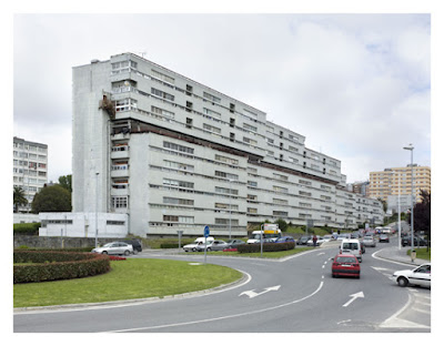 Y yo lo corroboro porque justo al lado de esa foto está el bloque donde yo me crié y viven mis padres. La nombrada Plaza de los Fresnos (otra peculiaridad de este barrio es que las calles tienen nombres de flores y las plazas de árboles) la conocemos tradicionalmente por la "Plazoleta del Oza Juvenil", que es un equipo de fútbol local que tiene justo el local social en los bajos del portal de mis padres. Es curioso porque cuando veniamos en taxi a casa siempre decíamos esa dirección, usando la peculiar palabra "plazoleta", porque para todos es más fácil expresarse así que por el nombre de las calles, que vuelve locos a carteros, repartidores, taxistas y demás ya que el barrio no tiene calles como tal, sino una estructura organizada en bloques numerados desde el 1 al 56 (el nuestro). os aseguro que ni yo mismo soy capaz de situar los 56 bloques correctamente porque en esa concepción vanguardista que supuso la construcción del barrio también había bloques exclusivamente dedicados a locales comerciales que en los primeros años daban mucha vida al barrio pero hoy en día están prácticamente sin actividad comercial. Una anécdota: mi madre compraba en una carnicería situada en uno de esos locales y tenía muy buena relación con Rosario, su propietaria. Con el tiempo me comentó mi madre que esa mujer era la madre de la conocida y ya fallecida Rosalía Mera, ex-mujer de Amancio Ortega y una mujer emprendedora que llegó a ser de las de más fortuna de España no sólo por su participación en Inditex sino también por sus propias empresas.